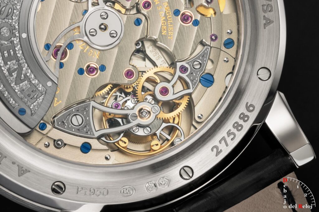 Además cuenta con caja realizada en platino, además de otros elementos como el rotor del calibre.