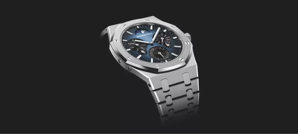 La casa Audemars Piguet ha presentado su nuevo Royal Oak Calendario Perpetuo Automático Ultraplano de 41 mm. Un reloj creado en edición limitada a tan solo 200 unidades que se inspira en el modelo RD#2, lanzado en el año 2019, y que incorpora sus avances realizados en el mundo de los calibres ultraplanos. El resultado es un atractivo reloj creado en titanio y con una preciosa esfera en azul “ahumado”, degradado, que se realizará en edición limitado a tan solo 200 unidades.