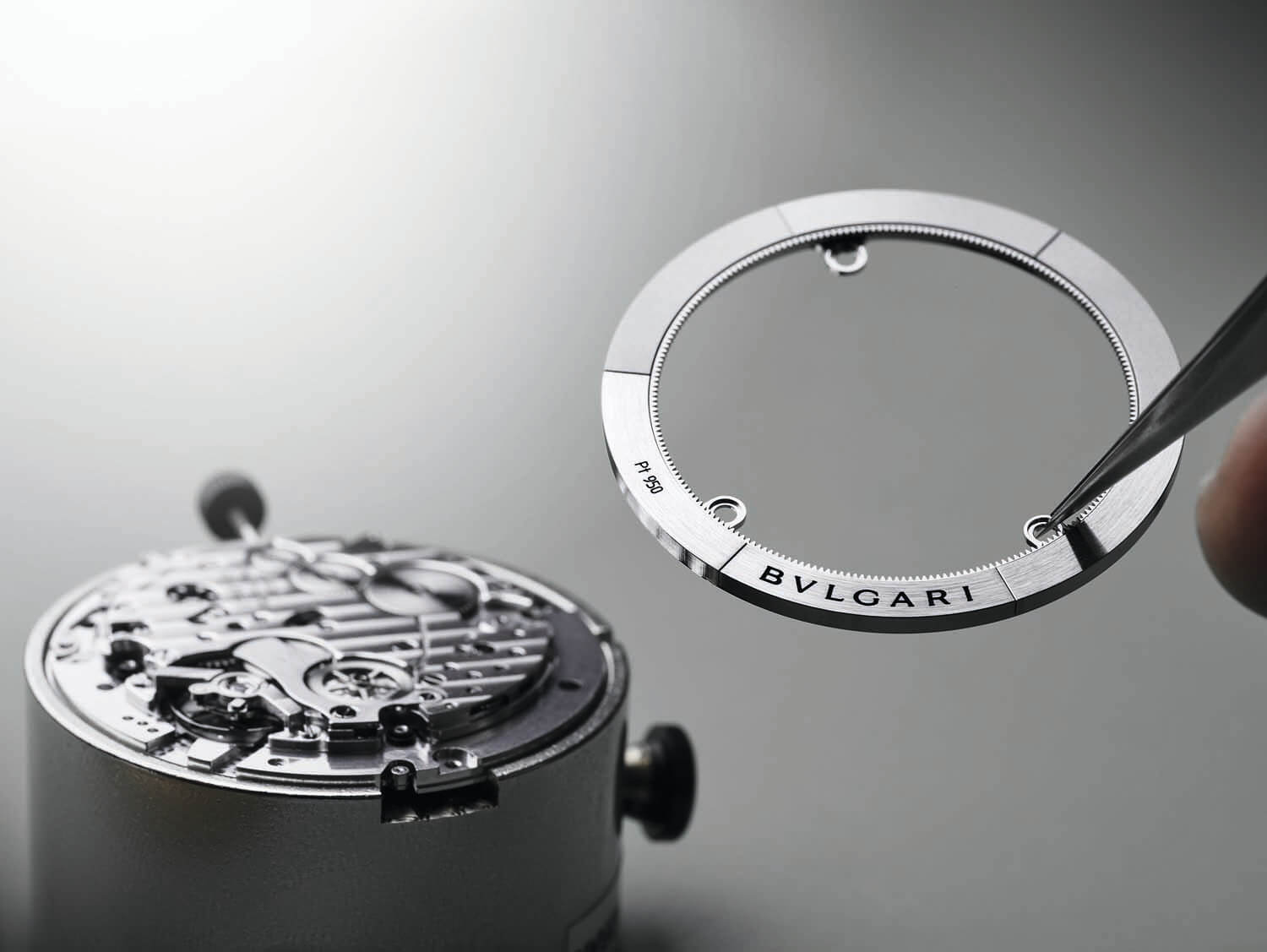 En el interior el calibre utilizado es el BVL 138 ultrafino, diseñado y fabricado por Bulgari. Movimiento mecánico de carga automática con micro-rotor. Dispone una reserva de marcha de 60 horas.