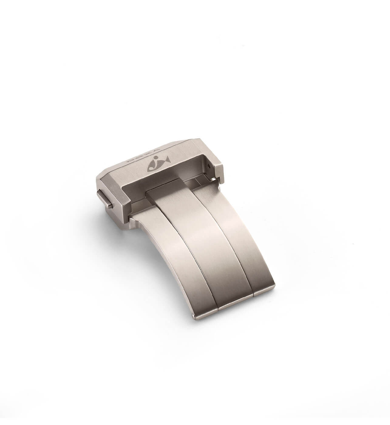 Completa el conjunto su correa de caucho de color azul a juego con dial y bisel con cierre de titanio.