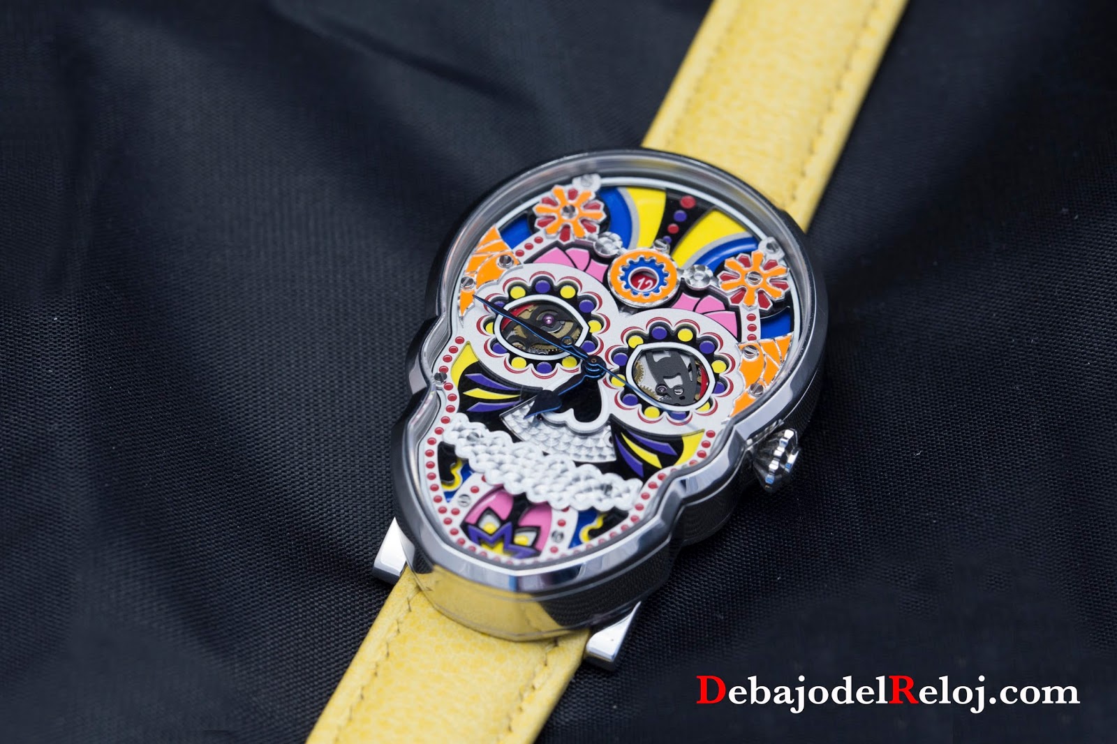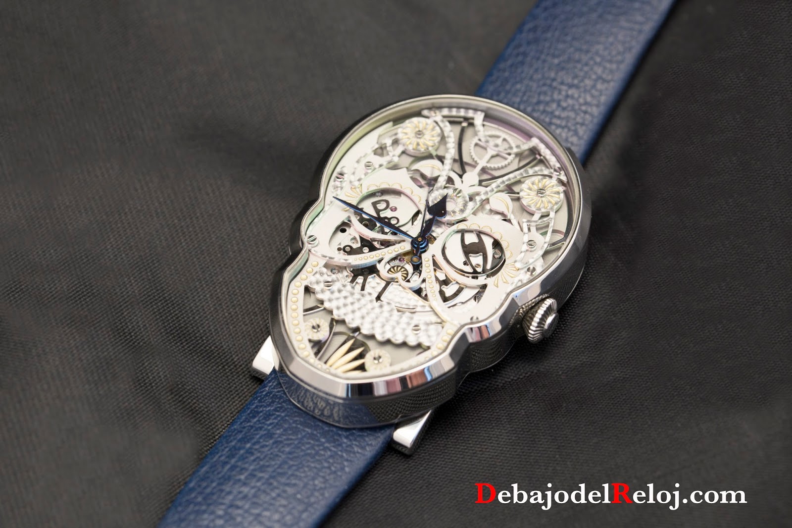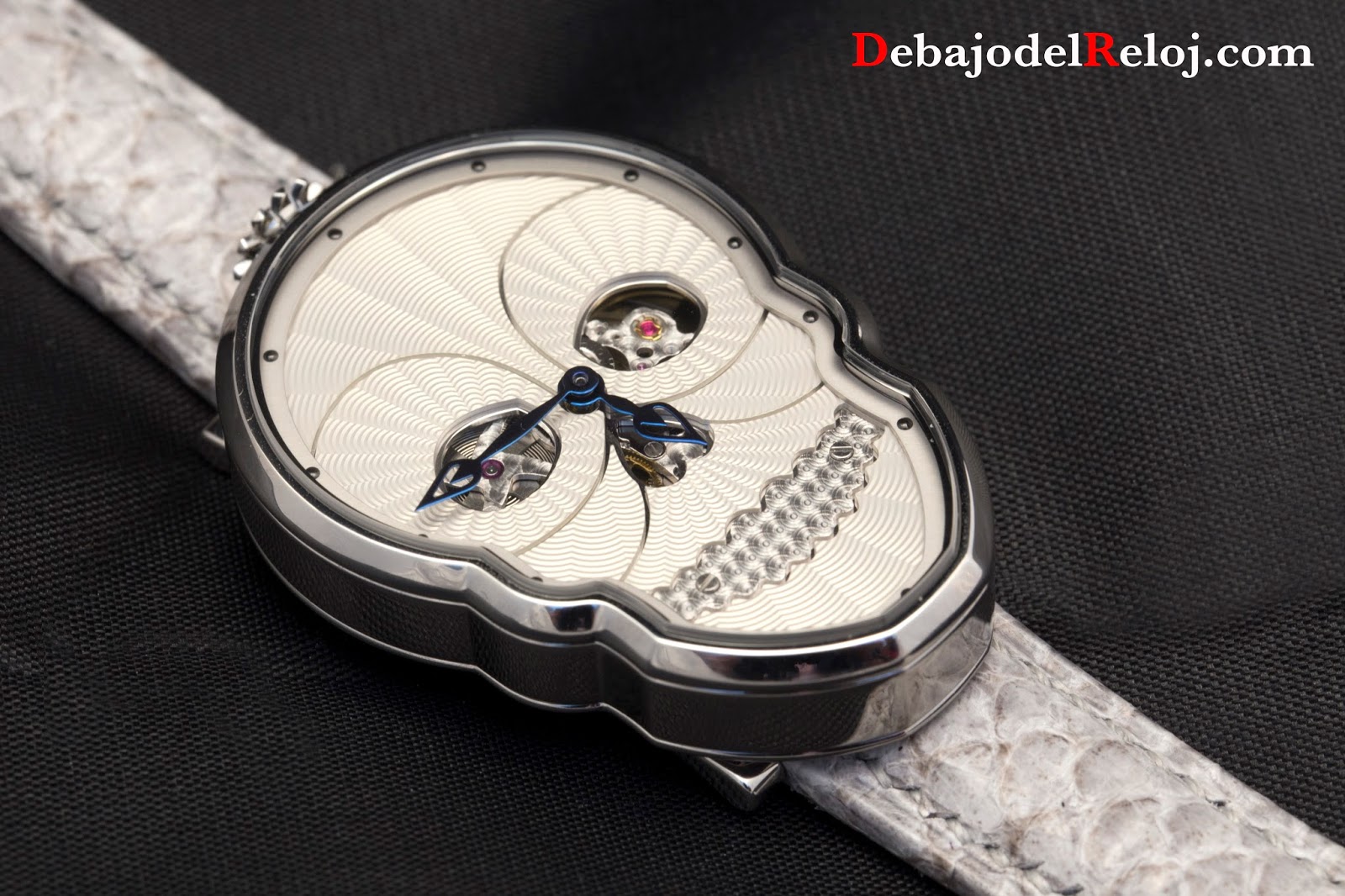 Los relojes presentados son los llamados Petit Skull edición limitada a tan solo 18 unidades, en cada uno de los colores disponibles, negro, plateado y azul. El dial esta formado por nueve capas trabajadas de manera manual y con técnicas artesanales cada una de ellas. El esqueletado del movimiento esta realizado de tal manera que su diseño encaje perfectamente en el diseño del dial dejando ver las partes del movimiento que deseaba Fiona. El calibre utilizado es un movimiento suizo de remonte automático.
