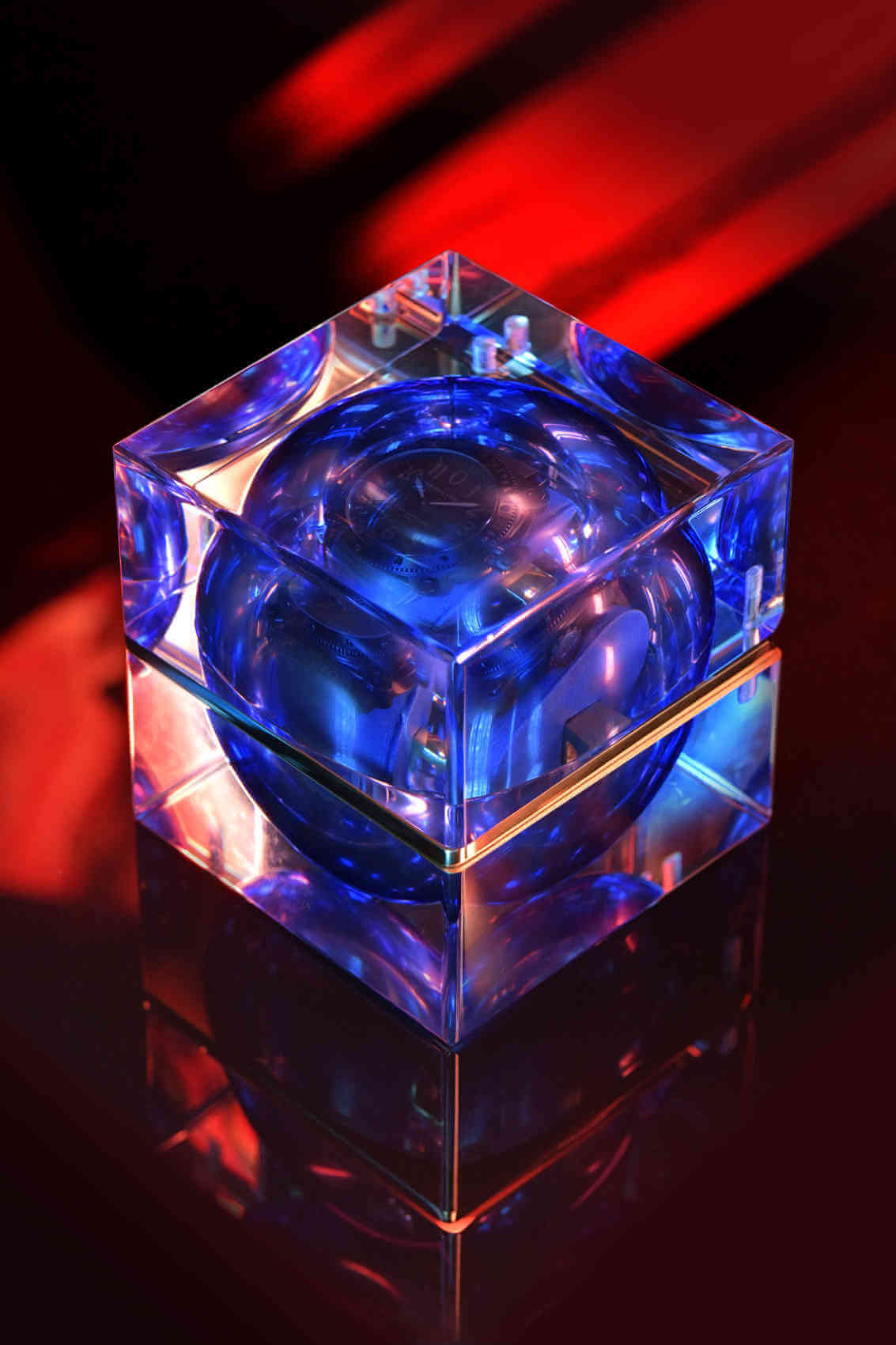 La correa es de caucho de color negro con hebilla con revestimiento de PVD negro. Se ha diseñado un estuche especial creado por Nathan Crowley, diseñador de producción de TENET.