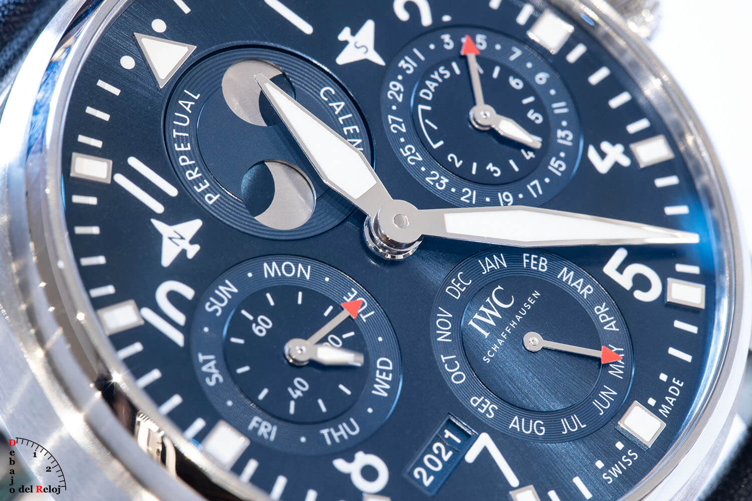 En el mes de Abril se presentó el Iwc Gran Reloj Aviador Calendario Perpetuo, con motivo de la Watches & Wonders 2021 celebrada de manera digital. Una nueva versión de un icónico modelo con un llamativo color azul en su esfera. El calendario perpetuo de este modelo fue desarrollado en los años 80 por el antiguo relojero jefe Kurt Klaus. El primer Gran Reloj Calendario Perpetuo se presentó en el año 2006 en edición limitada a 25 ejemplares de platino. Desde entonces han aparecido sobre 37 versiones.