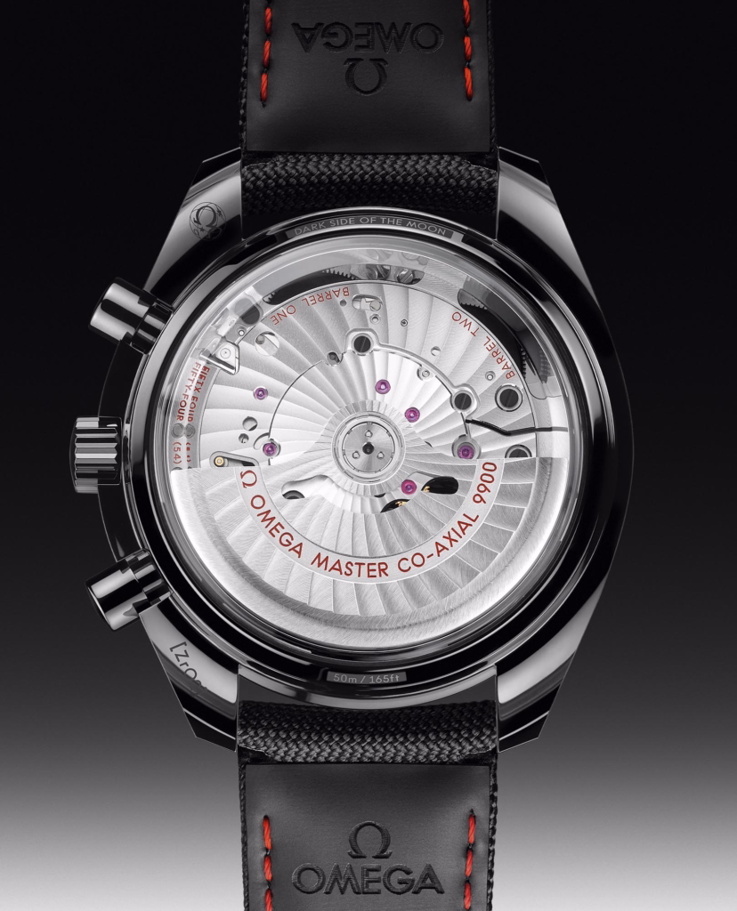 • Una versión renovada del Dark Side of the Moon original, accionada por el movimiento Co-Axial Master Chronometer 9900, con escala taquimétrica en Liquidmetal y una esfera de cerámica refinada con dos pletinas y acabado mediante cepillado láser, todo en un perfil más estilizado. Un modelo íntegramente en negro que aloja el movimiento Co-Axial Master Chronometer calibre 9900 Black Edi6on con componentes ennegrecidos y una escala taquimétrica esmaltada. La esfera de cerámica está pulida al chorro de arena mediante láser y cuenta con índices biselados pulidos con diamante y rellenos de Super-LumiNova.
