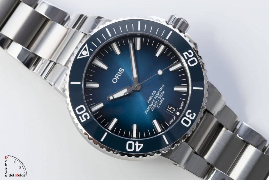 Hace unas semanas se presentó el nuevo Oris Aquis Date Calibre 400, el primer reloj en equipar el nuevo movimiento manufactura de la casa Oris. Un reloj del que ya habíamos hablado en este artículo y que ahora hemos podido conocer en persona y fotografiar. Un nuevo modelo donde la gran novedad es el calibre 400 al que se acompaña del popular diseño del Aquis con una llamativa esfera azul con acabados rayos de sol. La manera más rápida de diferenciarlo de los otros modelos con el calibre genérico es por la mención a su reserva de marcha, “5 days”, que muestra en su esfera.