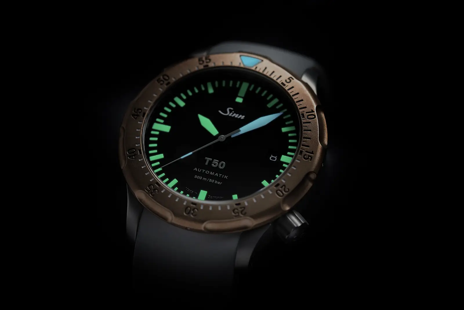 La casa Sinn ha presentado el nuevo T50 GoldBronze y el nuevo T50 GBDR. Nuevos relojes que cuentan con un diseño y concepto común aunque con importantes diferencias entre ellos. Dos relojes que se caracterizan por sus dotes para el submarinismo aunque cuentan con características visiblemente diferentes, el GBDR de titanio con bisel de Goldbronze mientras que el Goldbronce la caja, bisel y corona son de este material con tapa de titanio. Además el T50 GOLDBRONZE se fabricará en edición limítala a tan solo 300 unidades.