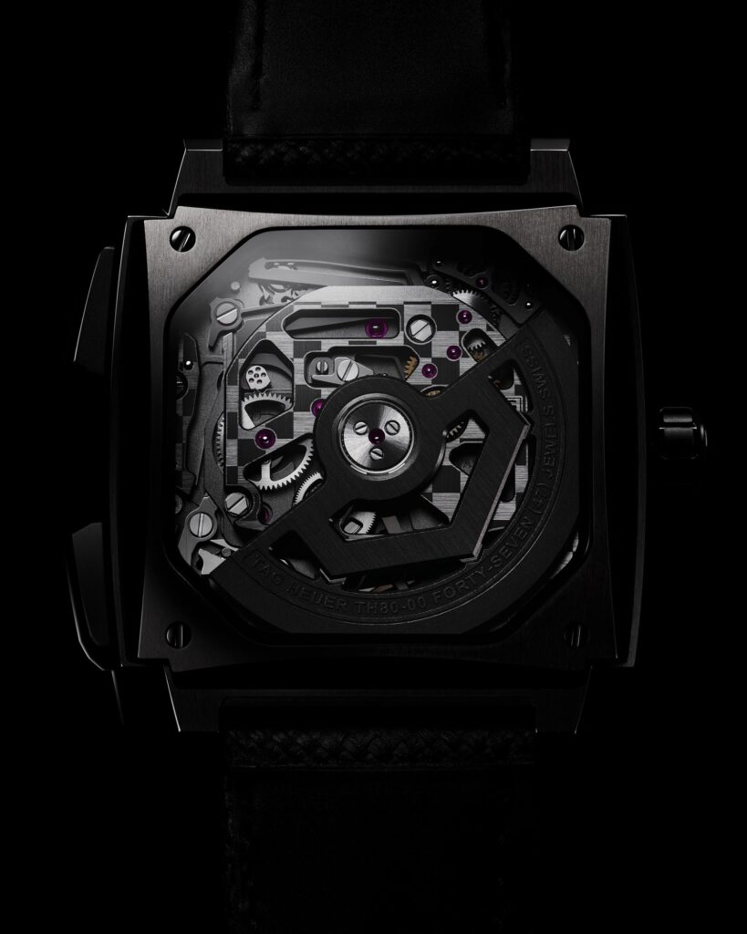 Dotado de un mecanismo de cronógrafo único en su género, construido con componentes flexibles y desarrollado íntegramente por el TAG Heuer LAB, el Calibre TH80-00 reinventa tanto la funcionalidad como la experiencia táctil del accionamiento de la complicación del cronógrafo. Equipado con el oscilador TH-Carbonspring, este nuevo movimiento garantiza resistencia magnética y precisión, junto con una frecuencia de 5 hercios, una reserva de marcha de 70 horas, la certificación COSC y una garantía de cinco años.