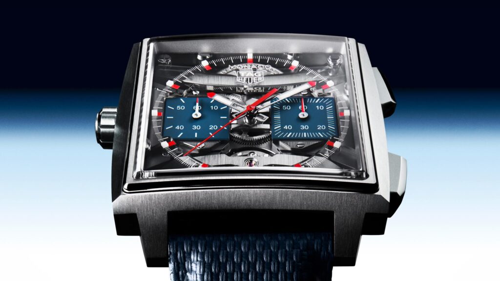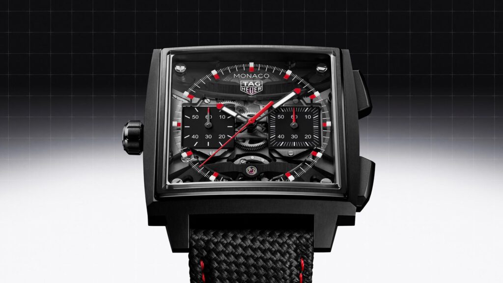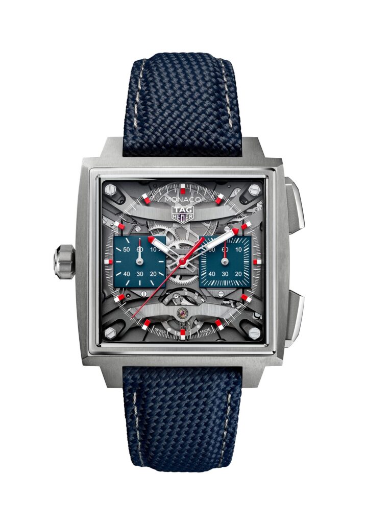 Vamos con otra de las novedades presentadas por la casa Tag Heuer en Watches and Wonders 2026, el nuevo Monaco Evergraph. Presentado en dos versiones distintas, el TAG Heuer Monaco Evergraph es totalmente contemporáneo y rinde homenaje a la rica historia de la marca con una versión en titanio con detalles en azul que evoca la referencia 1133B, popularizada por Steve McQueen, y una versión en titanio con recubrimiento DLC negro y detalles en rojo, inspirada en el ADN de competición de TAG Heuer y en su característica paleta de colores.