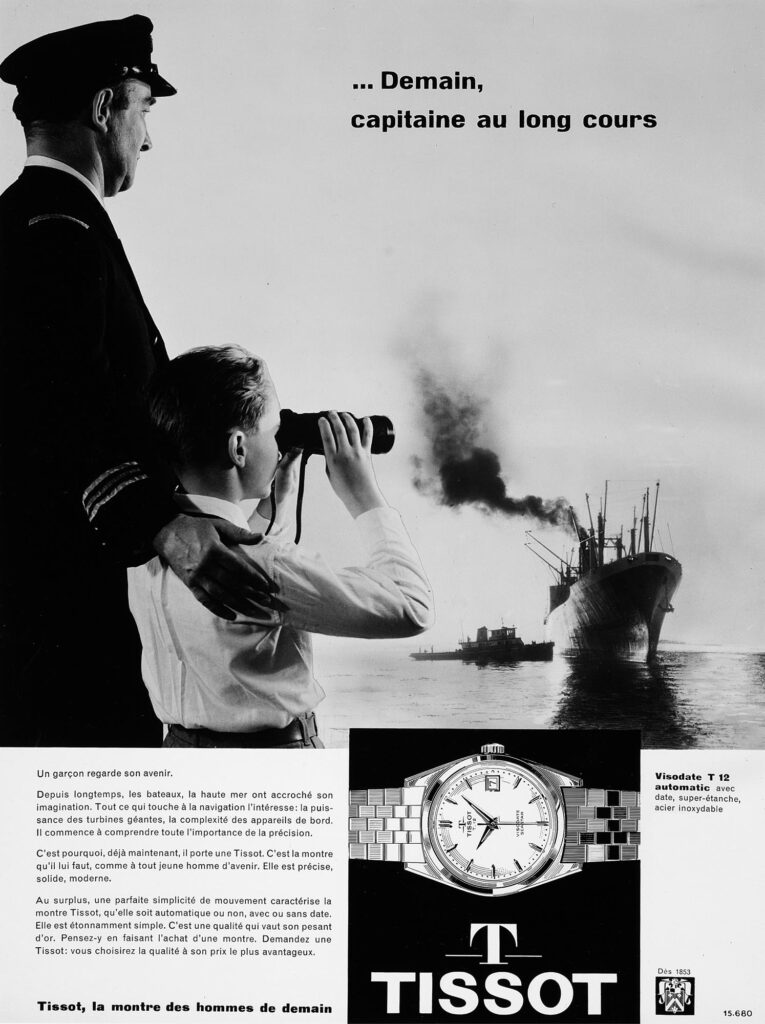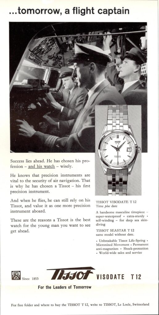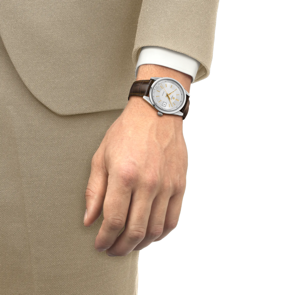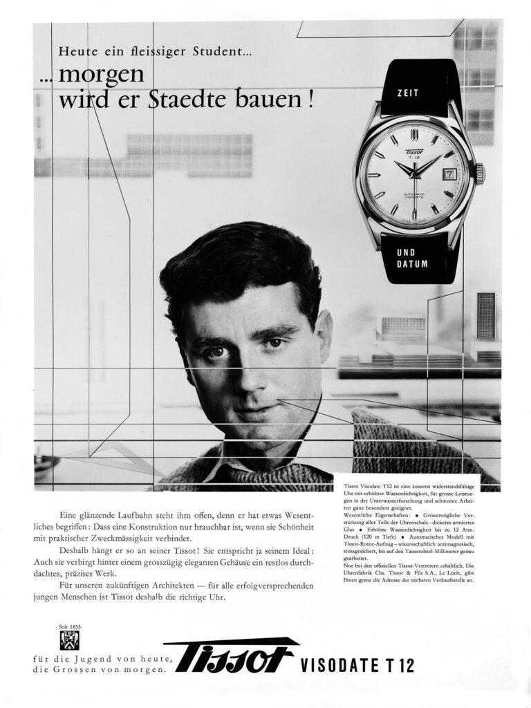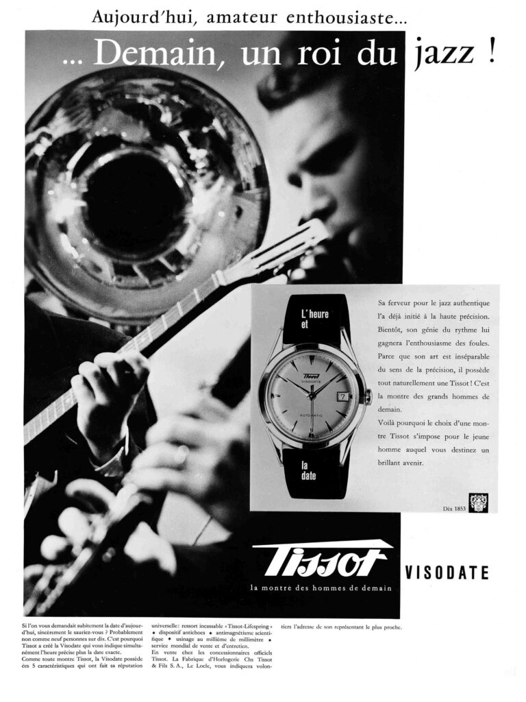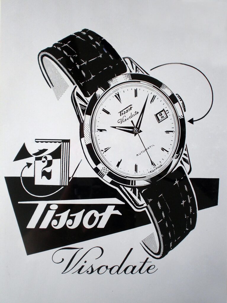 Aunque el Visodate se lanzó oficialmente en 1954, sus raíces se remontan a creaciones anteriores de Tissot, que consolidaron la visión de la marca sobre las complicaciones funcionales. En la década de 1940, Tissot presentó el Calendrier, su primer reloj de pulsera con indicación de fecha. En este modelo, una aguja adicional en forma de flecha señalaba los números impresos en rojo distribuidos alrededor de la esfera. Una década más tarde, en 1953, Tissot conmemoró su primer centenario con el modelo Centenary. Este reloj mostraba la fecha mediante una discreta apertura a las tres en punto, ofreciendo un enfoque más moderno y aerodinámico. Estos avances allanaron el camino para el Visodate de 1954, cuyo nombre lo decía todo: un reloj que unía visibilidad y calendario en un diseño elegante, sustentado por un mecanismo de indicación instantánea que permitía que la fecha cambiara de forma precisa a medianoche.