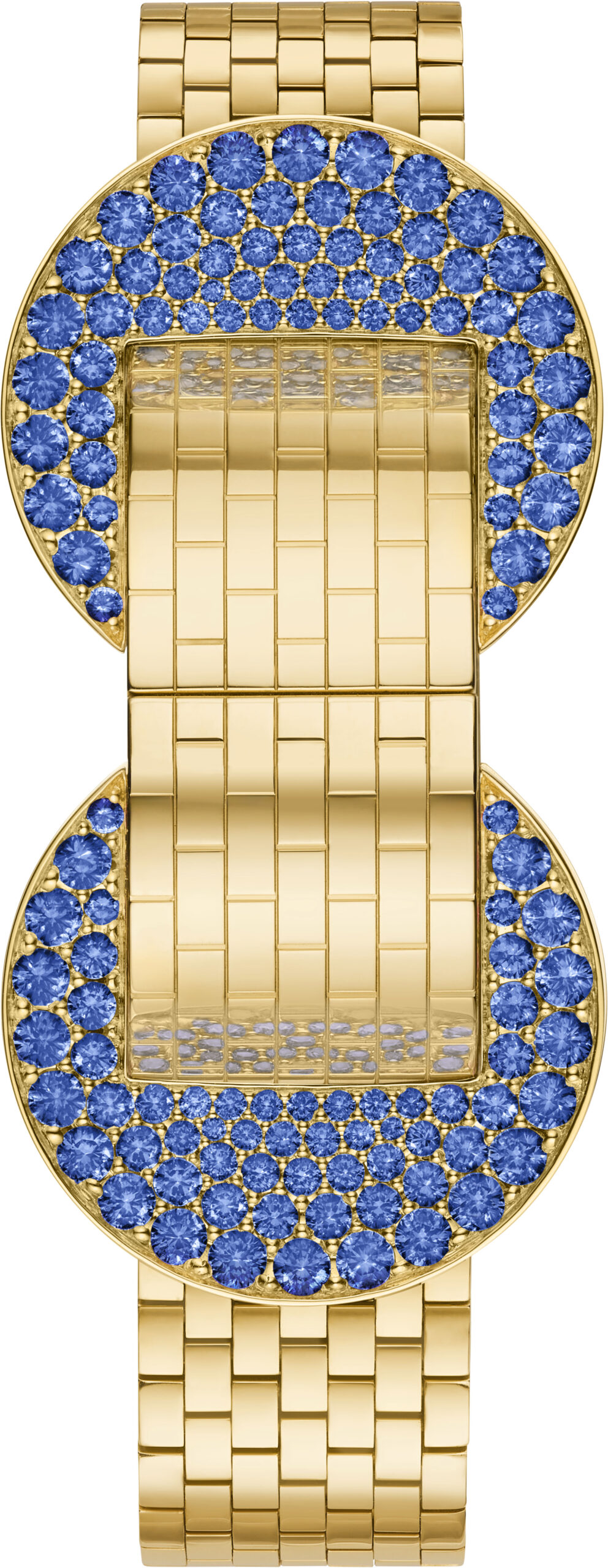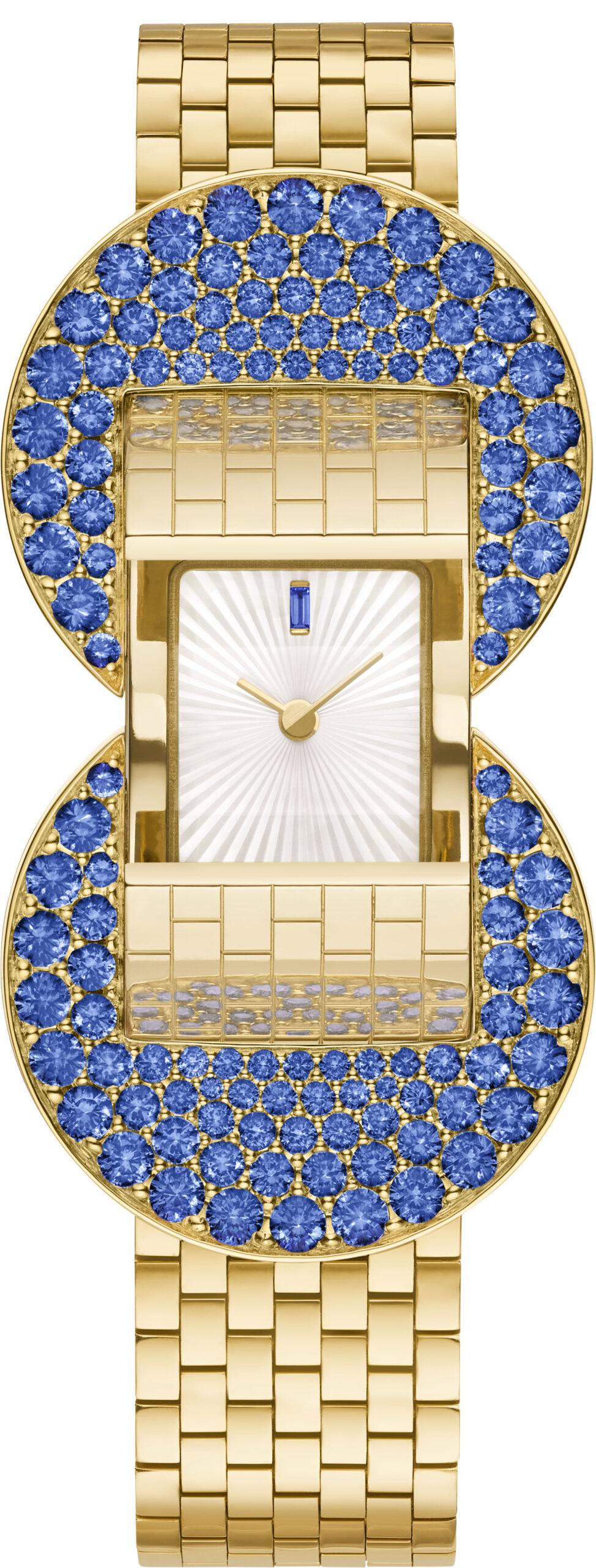 El nuevo reloj Ludo Secret de zafiro perpetúa esta tradición, revisitando un modelo de 1949. Se ajusta a la muñeca con un brazalete compuesto de eslabones de oro amarillo pulidos a espejo, cuidadosamente ensamblados y ajustadas a mano. Unidas en una malla flexible, parecen estar delicadamente tejidas. El brillo soleado del oro amarillo se mezcla con el azul intenso de los zafiros en una armonía de contrastes.