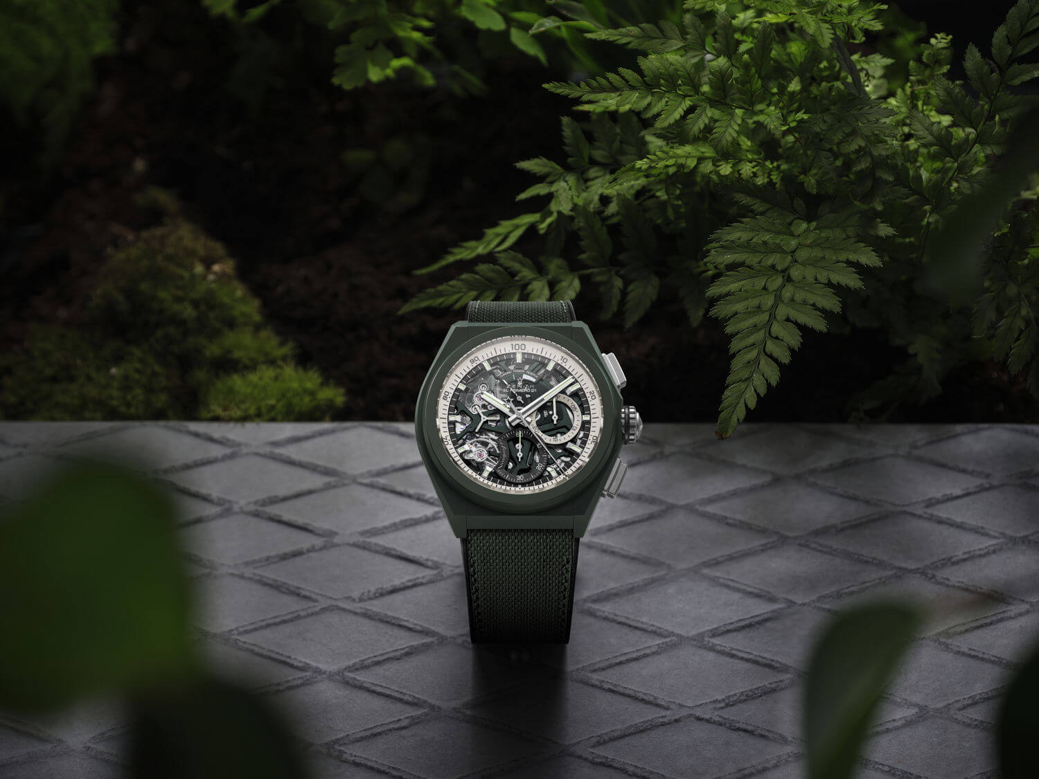 Otra de las novedades presentadas durante la LVMH Watch Week 2021 ha sido el nuevo Zenith Defy 21 Urban Jungle. Un nuevo cronógrafo mecánico de la familia de cronógrafos mecánicos más rápidos en producción. En esta ocasión vestido con una caja de cerámica verde.