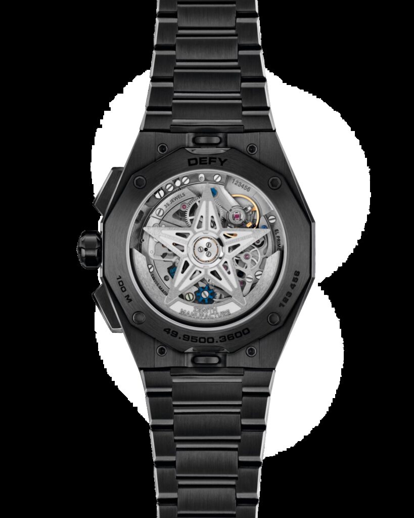 En su interior cuenta con el calibre El Primero 3600 ofrece. Un cronógrafo mecánico de carga automática y alta frecuencia que mide las décimas de segundo. Está formado por 311 componentes y cuenta con una reserva de marcha de 60 horas.